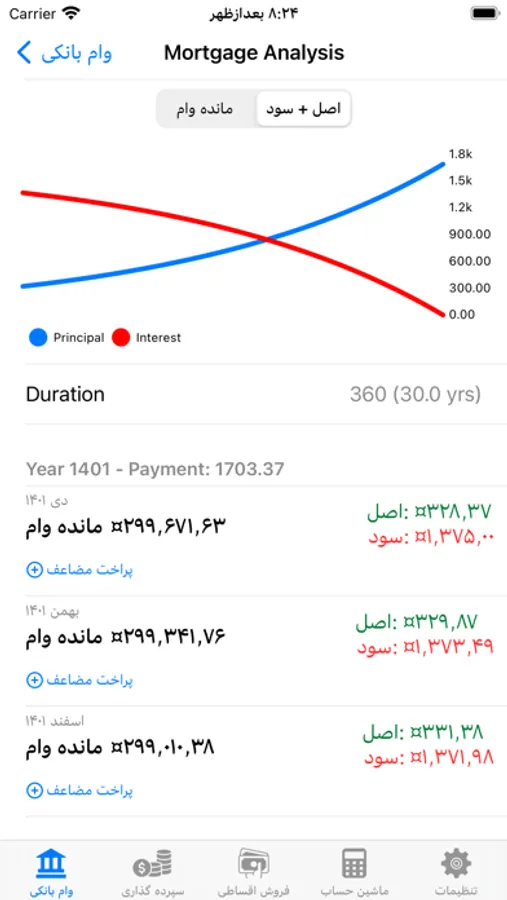 *مشاهده جزییات پرداخت وام به همراه امکان شبیه سازی پرداخت زودتر از زمان اتمام وام.