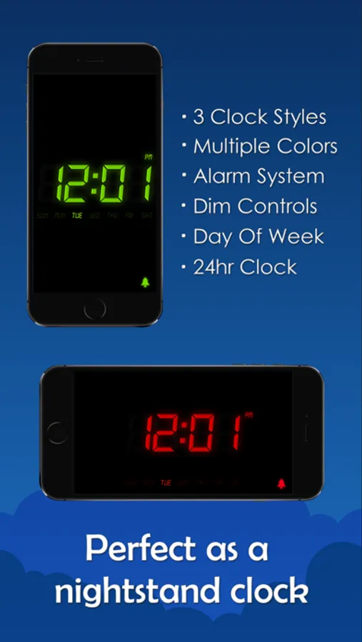 - Digital Clock which includes 3 different styles, multiple colors and brightness controls.