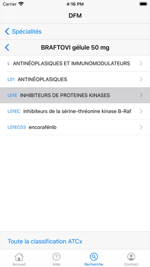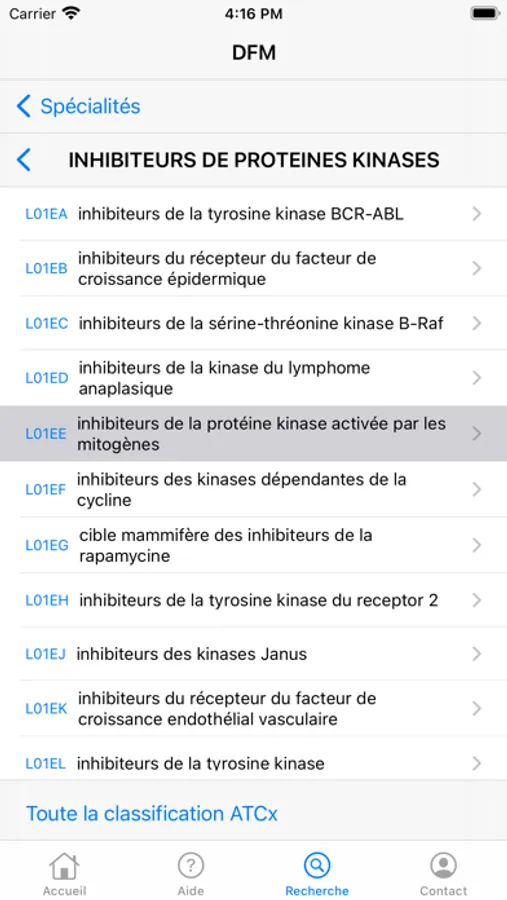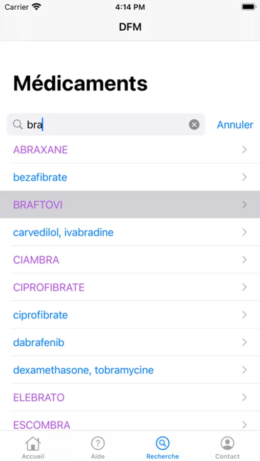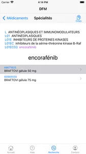 Les recherches dans la base se font par noms commerciaux, par noms génériques ou par classes pharmacologiques (ATC étendue). La navigation entre un médicament et ses équivalents pharmacologiques proches ou plus éloignés est facile et pratique.