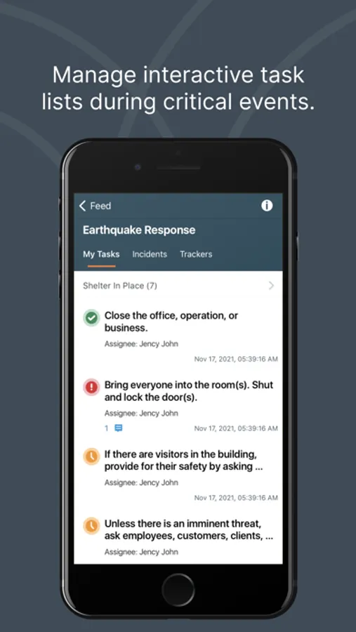 You can also connect with your employer or university to receive vital information during critical events or while managing your response to an incident. Your workplace, school, or similar organization may also allow you to view your schedule or create your own alert to send an SOS when in need of assistance.