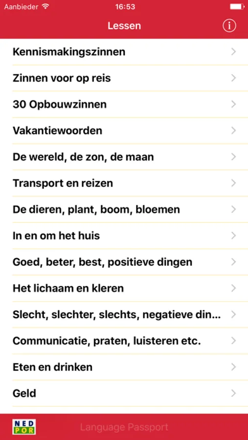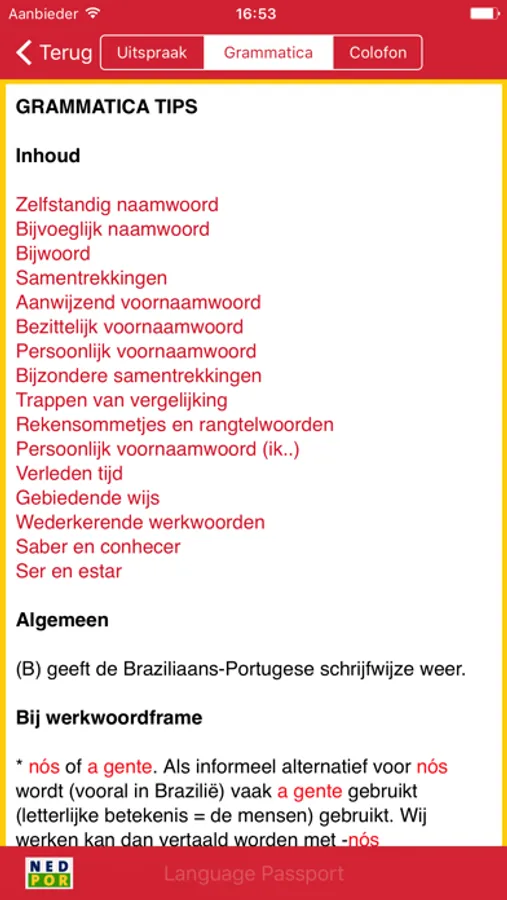Language Passport bevat een selectie van 600 in het dagelijks leven veel gebruikte woorden, verdeeld over 17 woordgroepen.