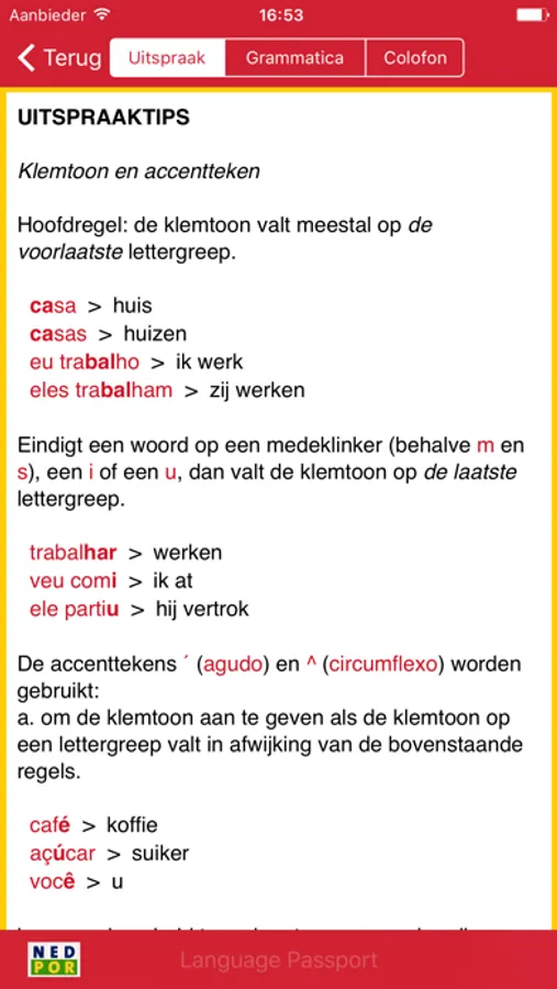 De werkwoordstructuur van het Portugees is niet heel eenvoudig. Op de Language Passport vind je een beknopte samenvatting van het Portugese werkwoordsysteem (regelmatige “ar”, “er”,en “ir” werkwoorden) en een aantal belangrijke en veel gebruikte onregelmatige werkwoorden, zoals; ser/estar (zijn), ter (hebben), ir (gaan), fazer (doen/maken), querer (willen) etc.