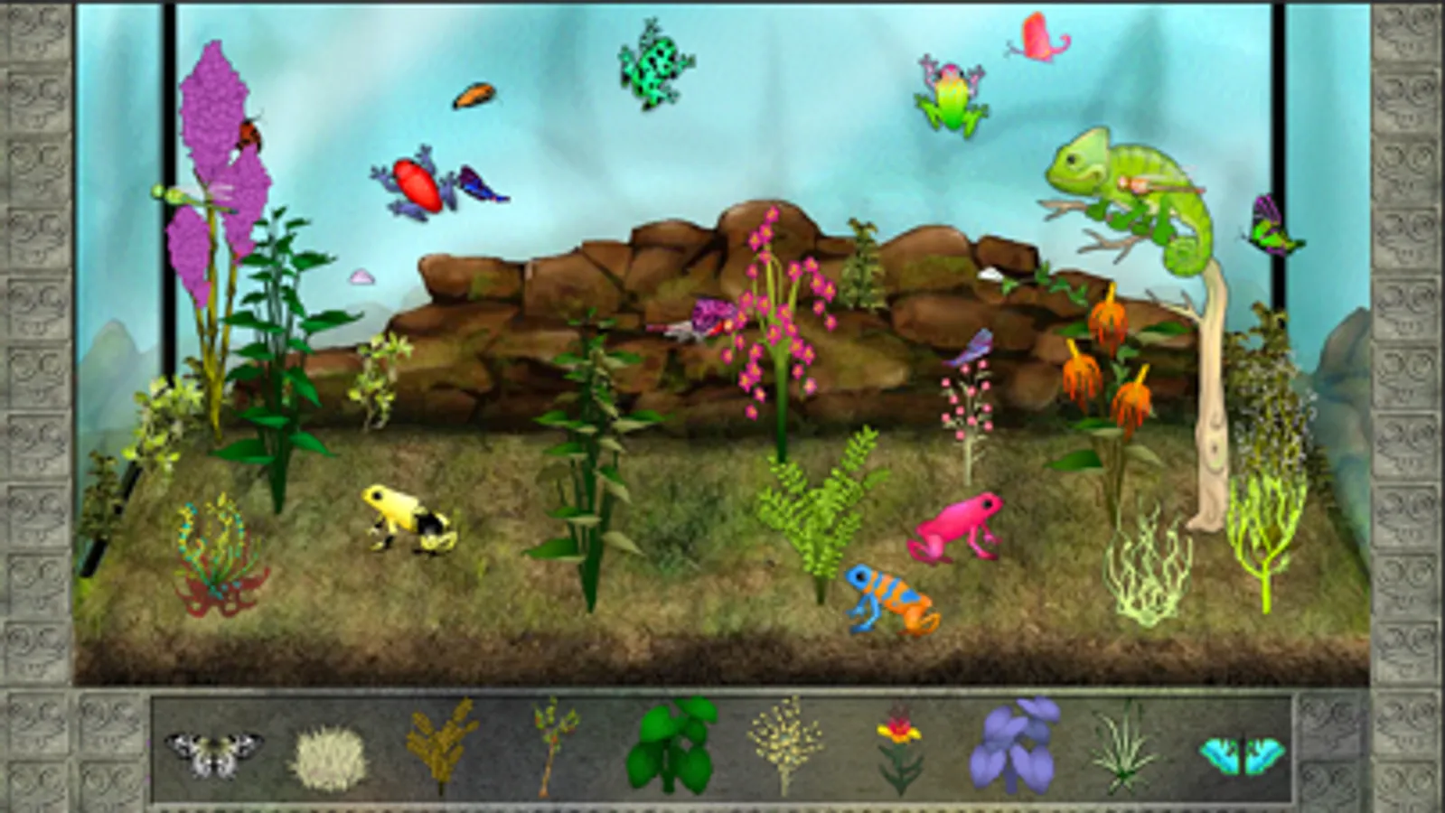 Populate and decorate your own interactive terrarium! Choose from tons of plants, frogs, butterflies and dragonflies to create your own uniques worlds.