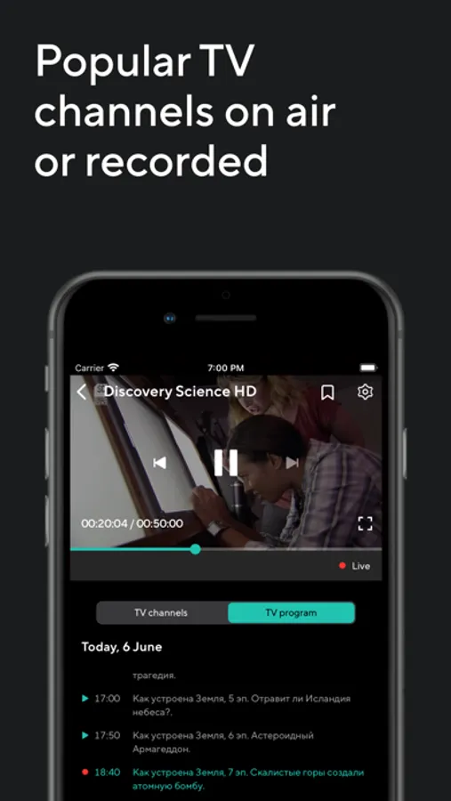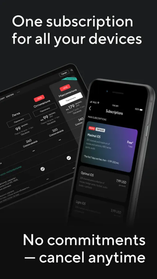 – One subscription — different devices. Connect different devices to your account. Watch online cinema and online television on several devices simultaneously.