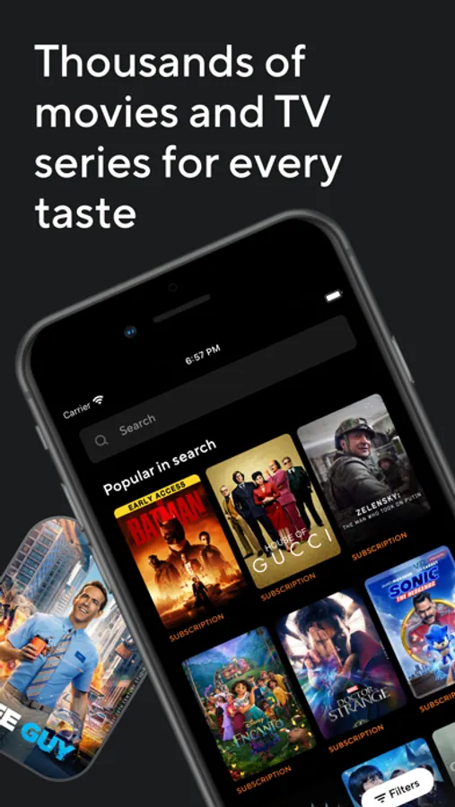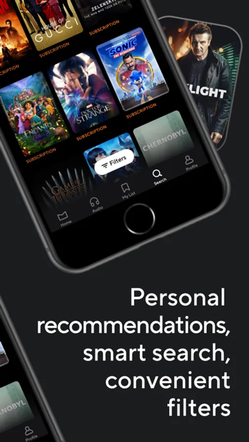 – Convenient search. Use filters by genre, rating, or country to find the content you need. Or try searching by title or actor.