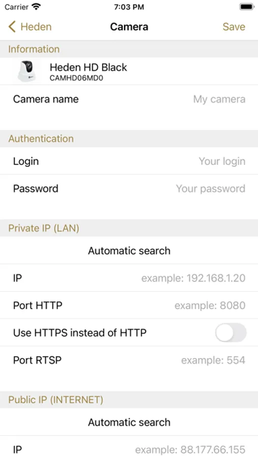 - advanced automatic search of the camera