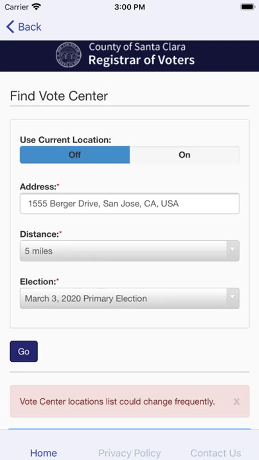 - Find nearest Vote Center and Ballot drop off Locations (with driving directions)