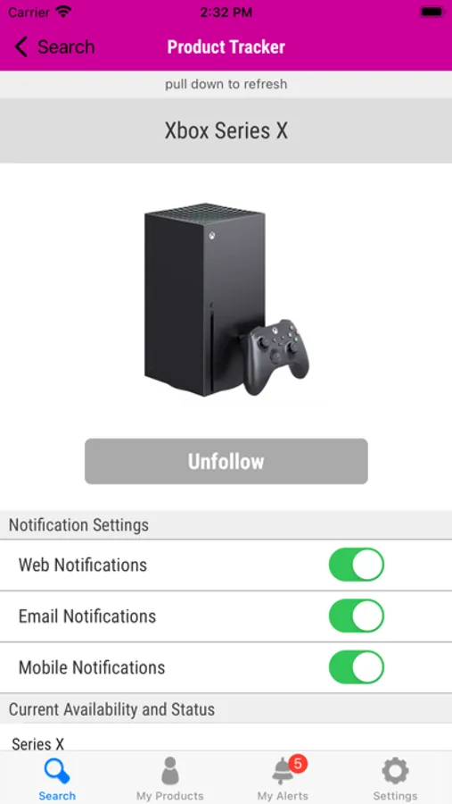 When a product comes in stock or becomes available for pre-order, the whohasit.today web site is updated within seconds. More important, however, are our Stock Alerts, which arrive instantly as a notification on your iOS device, as a message to your email, or even as an audio alarm on your desktop PC.
