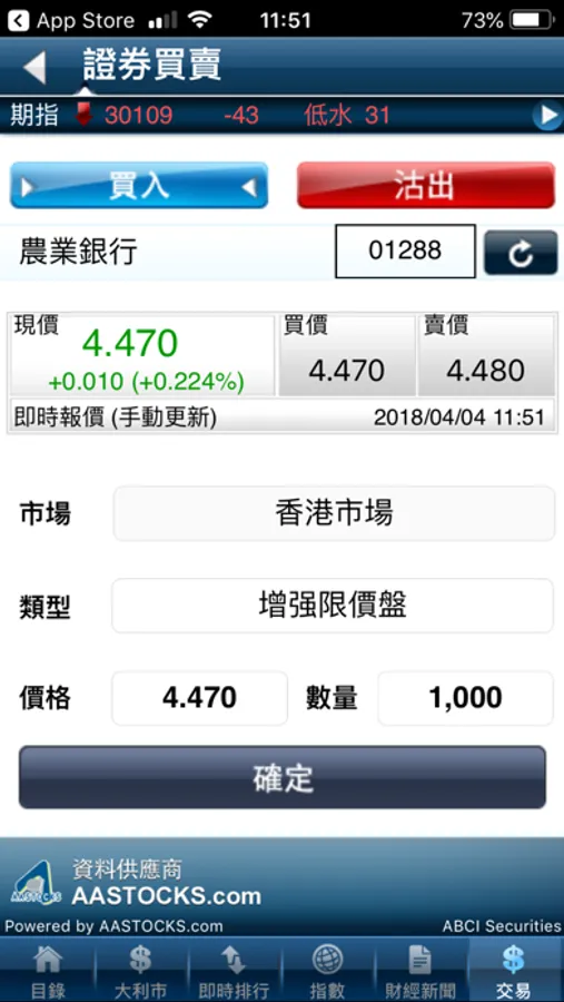 With the latest ABCI mobile wealth application, you can now keep abreast of the financial market dynamics on your Smartphone wherever you are. The application allows you to trade on your palm and offers a real-time platform for streaming quotes, transaction details, financial news and more. [Mobile wealth] provides you with more choices, faster speed and better enjoyment!