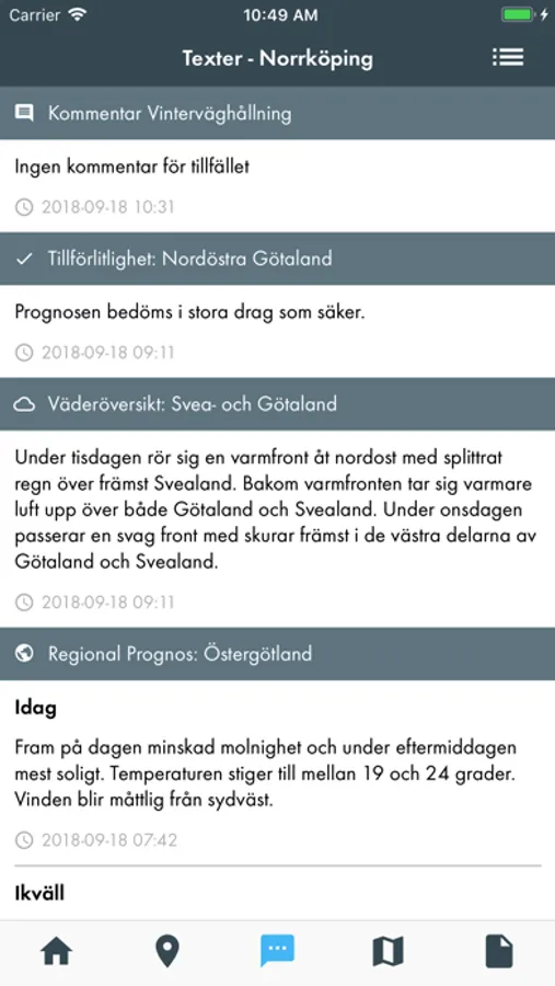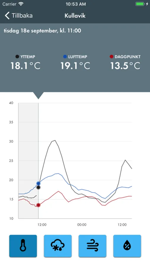- Punktprognoser för de väderstationer som finns ditt närområde och här fås prognos för yttemperatur, daggpunkt, nederbörd och vind