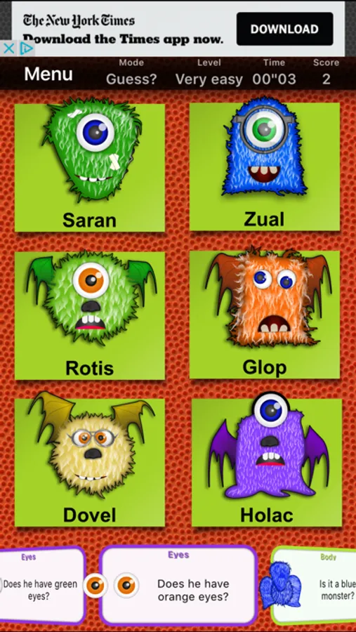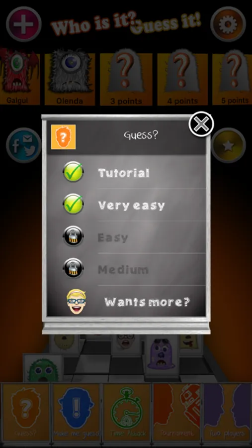Game comes with 3 difficult levels that will be unlocked when you have enough characters, from very easy to very hard. Depending on difficulty level, you will have to guess a character from 6 to 40 for iPad version and from 6 to 28 for iPhone/iPod version.