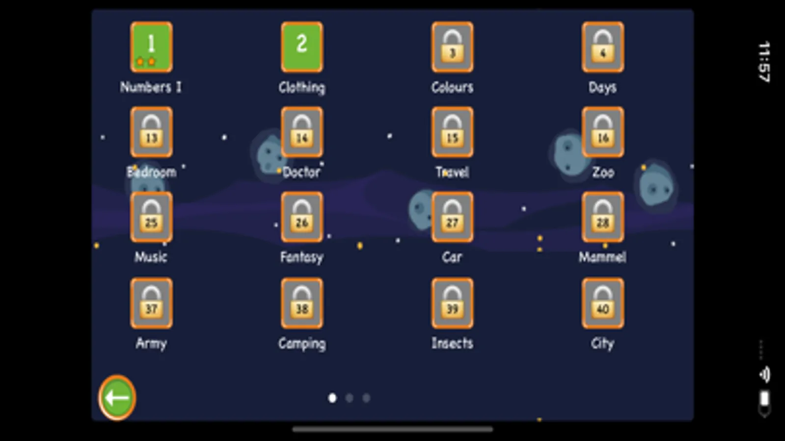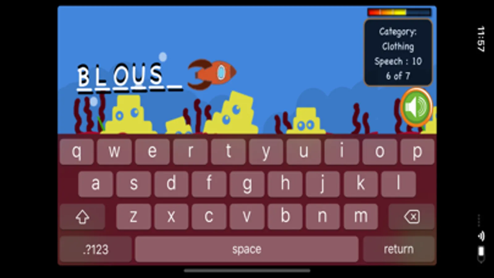 - Dictation: In the dictation exercise an English word is pronounced and this word must be typed. If the pronunciation of the word could not be heard, the volume button can be used to hear the word again. For dictation, it is required that there is an internet connection available. For all other exercises this is not needed.
