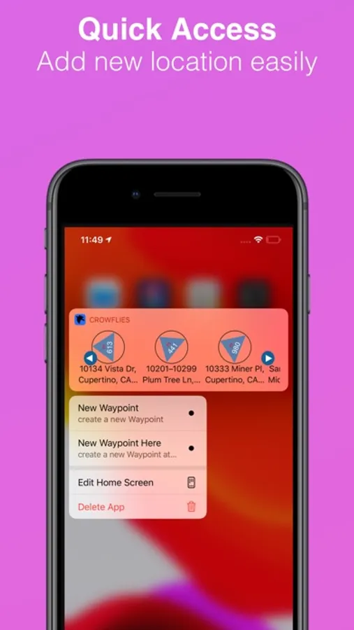 CrowFlies eliminates that problem! You can either save your current location before you set off and CrowFlies helpful compass will always point back towards where you have come from. Or simply mark where you would like to go on a map and have the compass show the way, even if you loose internet connection! CrowFlies also let's you know how far away you are from your chosen point.