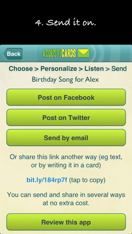 Perfect for birthdays, leaving cards, to say 'Congratulations' or simply 'I love you', AcoustiCards take just a minute to make but can be treasured for years. By selecting from hundreds of options you make each song unique to the individual.