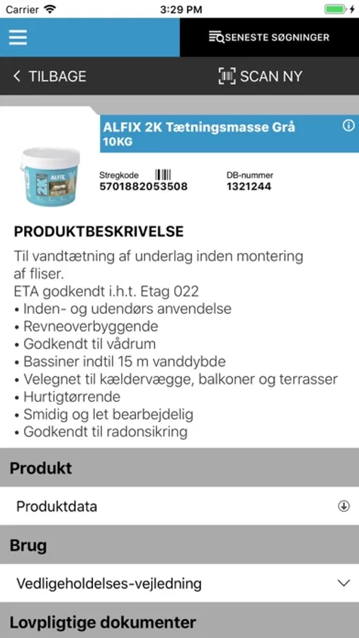 XL-BYG produktdata giver dig mulighed for at se detaljerede sikkerhedsoplysniger og informationer omkring produkter i produktdatabasen. Søg ved hjælp af varens EAN nr., DB nr eller scan stregkoden på produktet vha kameraet.