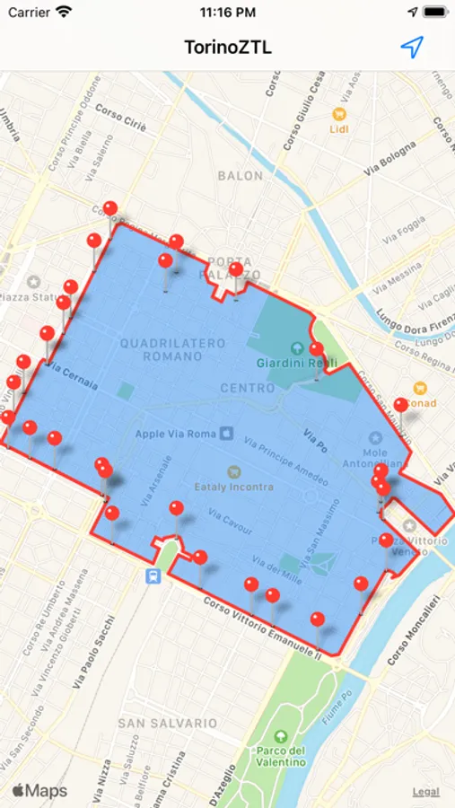 TorinoZTL allows you to know, in real-time, the borders and access points of the Central ZTL of the municipality of Turin.