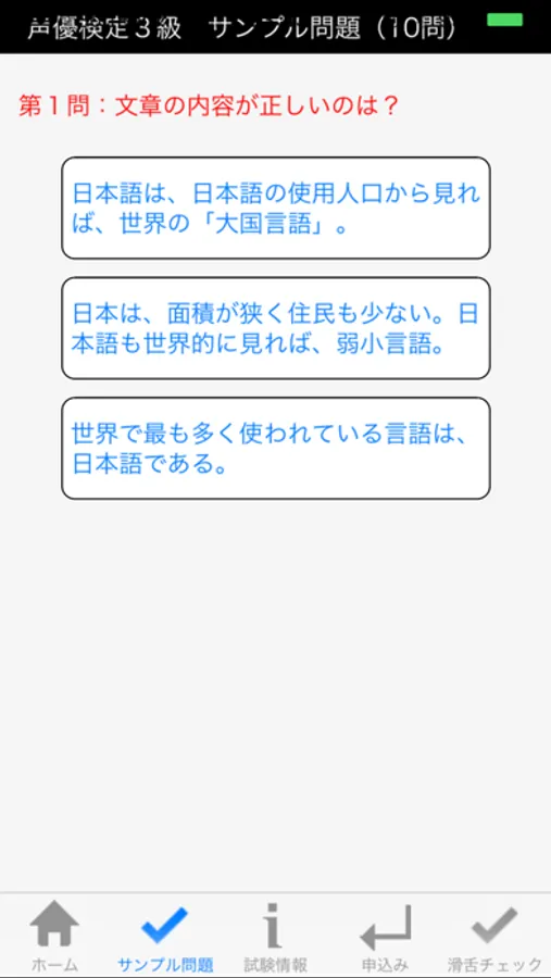・声優検定3級の問題をクイズ形式で解くことができます(無料)