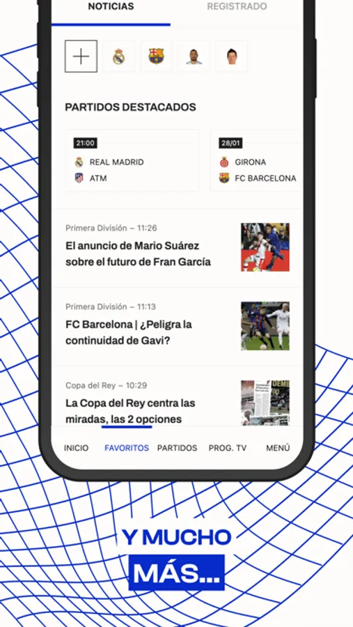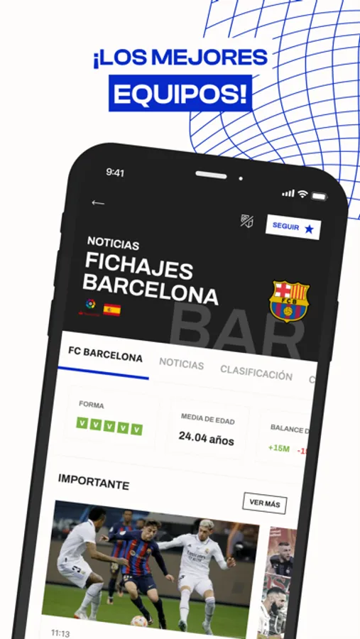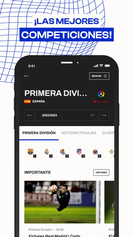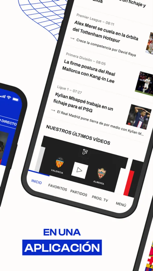 - Mi Fichajes: Personaliza tu aplicación para ver solo las noticias de tus equipos y jugadores favoritos y los partidos en directo de los clubes que más te interesen.