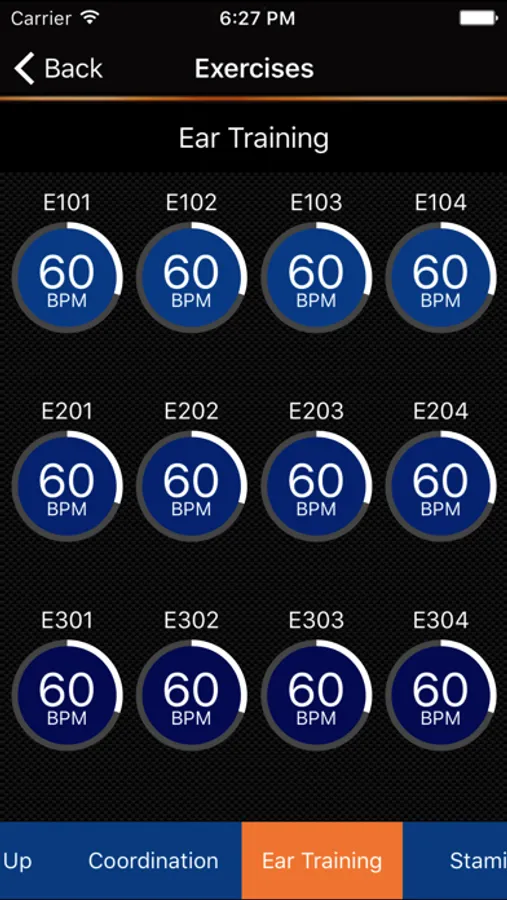 The 60 core exercises are split into five categories, each containing three levels of difficulty. The categories cover Warm-Ups, Co-ordination, Ear Training, Stamina and Rhythm, but all will test your left and right hand capabilities to the limit.