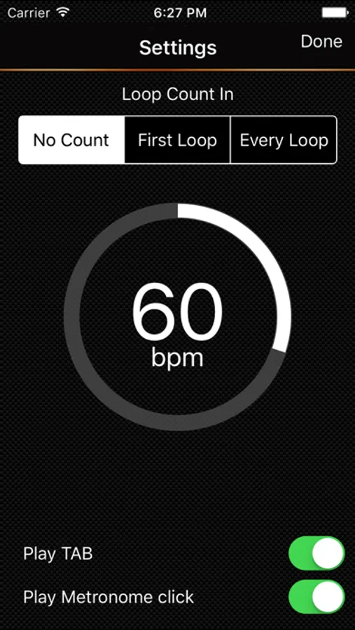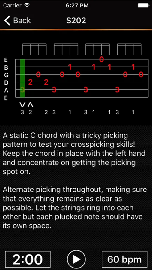 You can hear the exercises in advance and play along using the tab player and there's an adjustable metronome to keep you rhythmically on track.