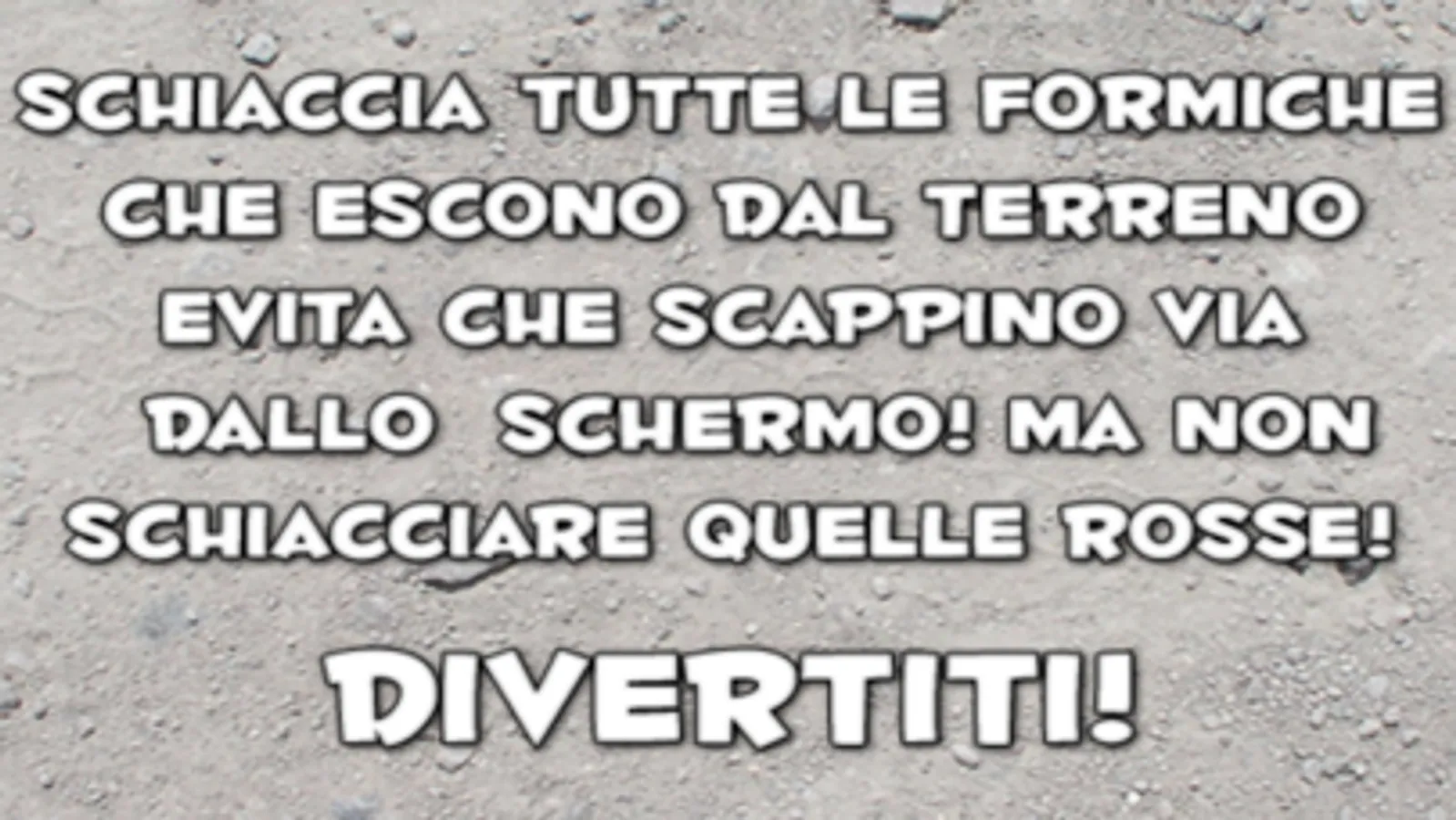 Scopo principale del gioco evitare che le formiche riescano a scappare via dallo schermo.