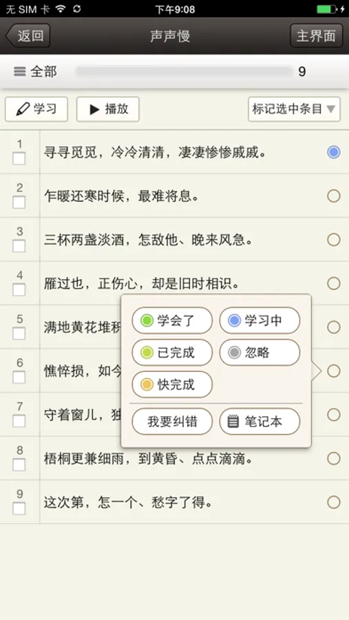 《易呗宋词三百首》与易呗旗舰产品《易呗背单词》一样,是一款采用易呗记忆引擎及产品框架制作的背诵诗词的软件。本软件针对背诵诗词进行了优化,支持“全景学习”模式。