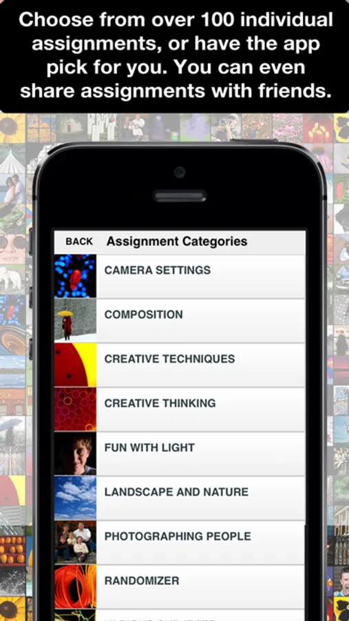 "tons of photography assignments that can help you learn to be a better photographer over time" -Appolicious.com