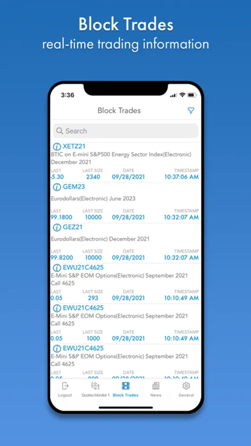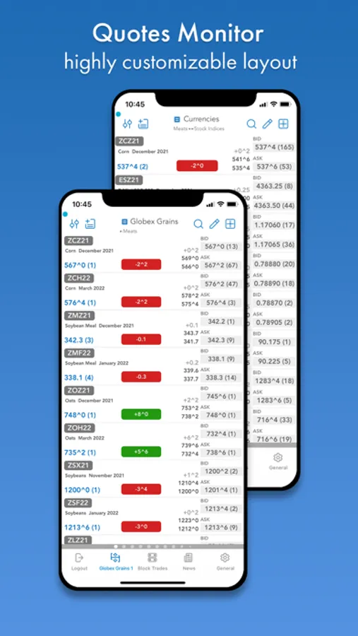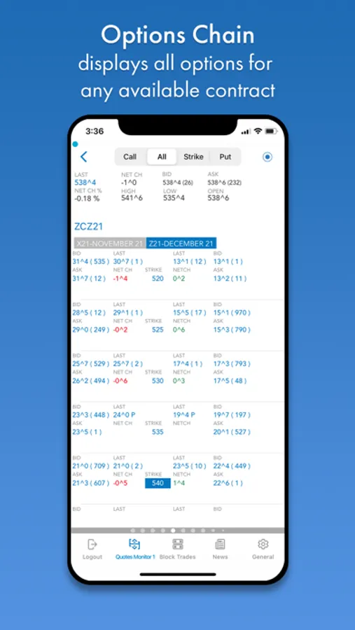 · Quotes monitor provides highly customizeable, detailed quote information and allows you to display your CME Group market data.
