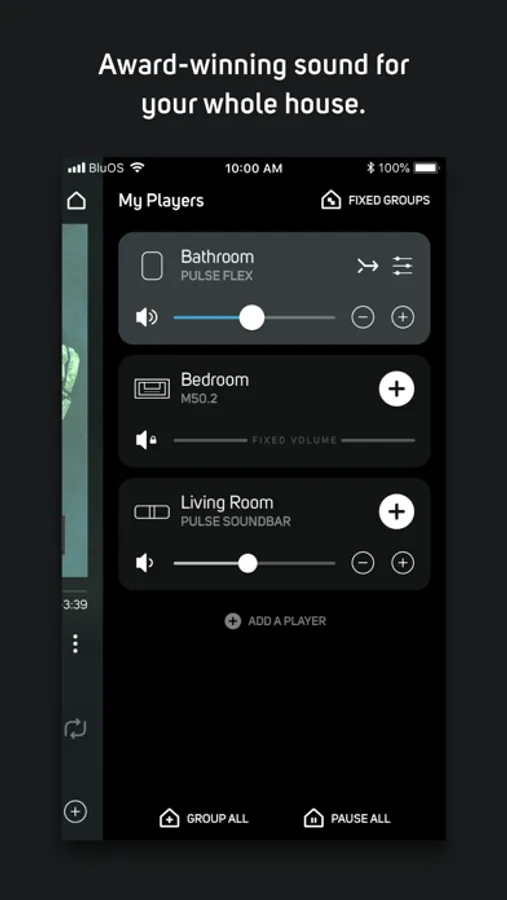 • Play different music in each room simultaneously, or stream a favorite in perfect sync to every BluOS-enabled speaker and player in your home.