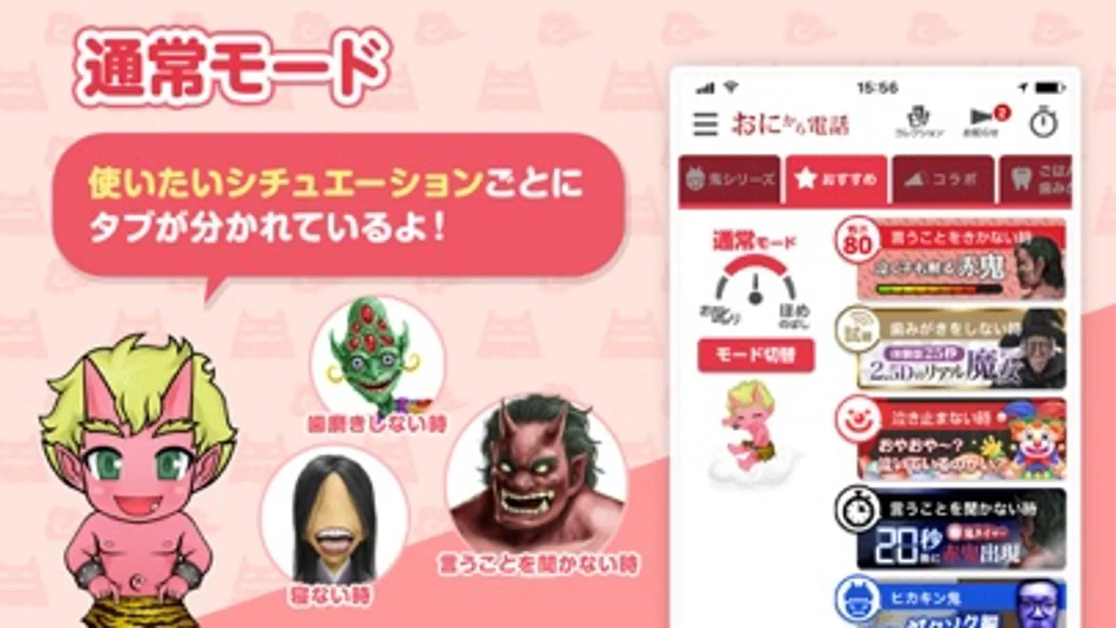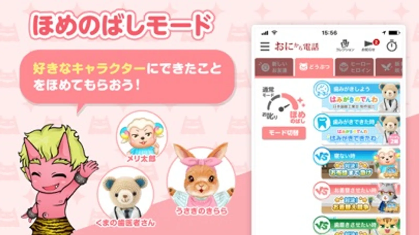 「おにから電話」を使えば、言い聞かせをしてくれる鬼や、早くお風呂に入ろうと誘いかけたり褒めたりしてくれる妖精から電話がかかってきて、子育てを楽しくサポートしてくれます。