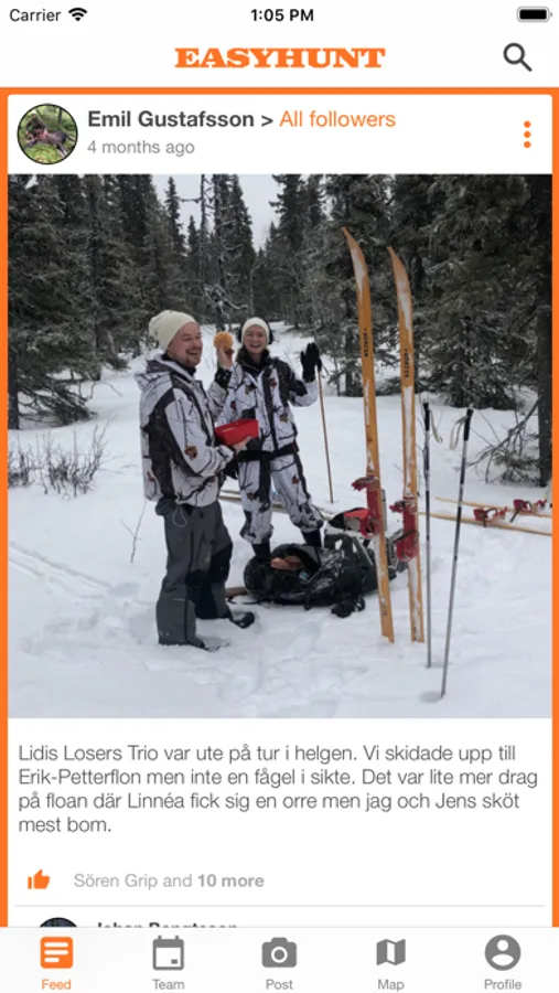 With Easyhunt your hunting team can build a customised hunting ground map with property boundaries, stands, etc. The app shows your own and your fellow hunters’ position, and if your dogs are equipped with eTrack trackers, you can follow their trails in real time. You can use the app to report shot and sighted game, either directly on the map or with the hunt report facility. The app includes a hunt calendar with an invitation feature, a hunting team chat facility and many other useful functions for the hunting team, including a photo gallery where you can share your hunting experiences with your team or with other followers.