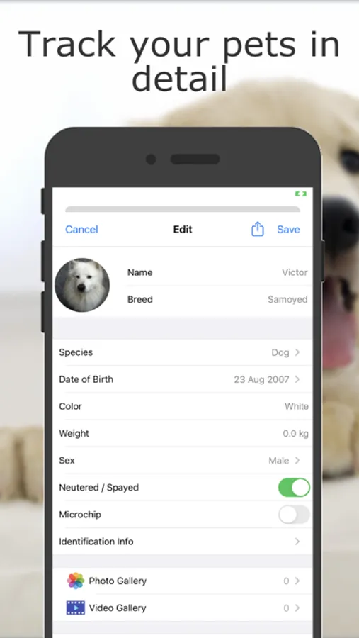 * Web Access: Upload your pet's records in cloud and access them using a web browser anytime from anywhere