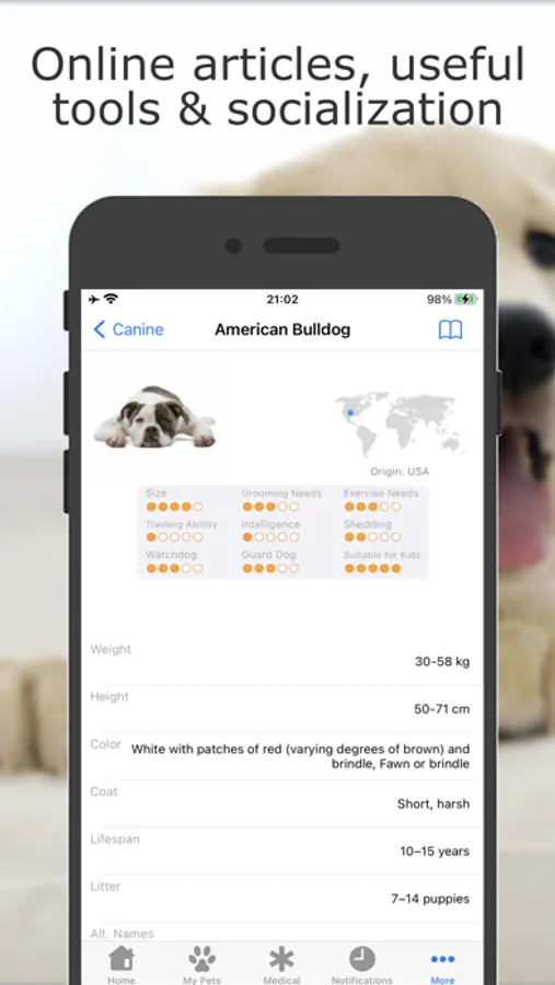 * Create useful contacts concerning veterinarians, trainers, groomers etc.