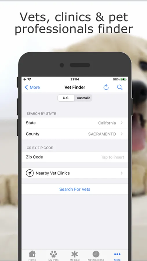 * Vet finder for U.S. (in over 8500 records) and Australia