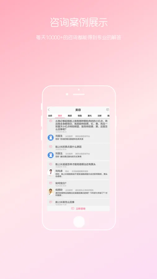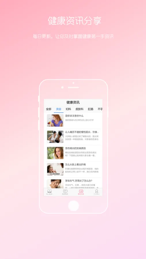 1、提供妇科,整形美容,产科,皮肤科,肛肠科,口腔科等多个专科科室发布咨询。