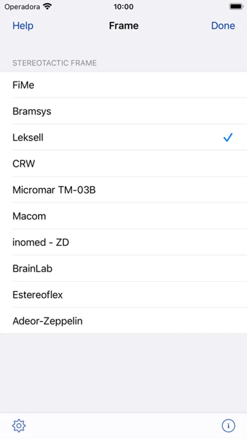 The present version of StereoCheck has support for FiMe, Bramsys, Leksell, CRW, Micromar, Macom, inomed-ZD, Brainlab, Estereoflex and Adeor-Zeppelin frames.