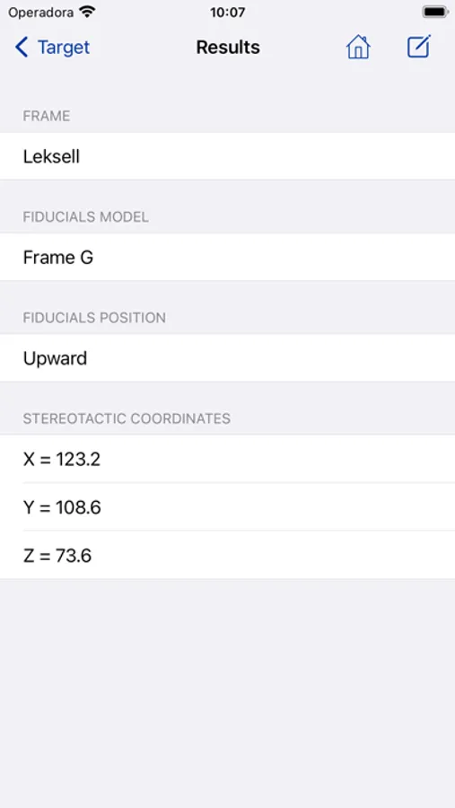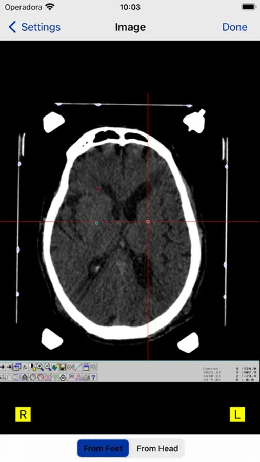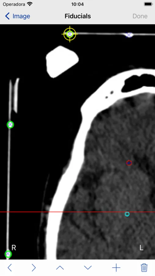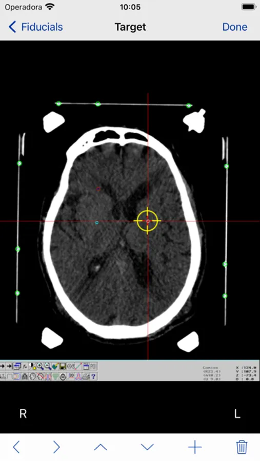 Mark the target point you want to reach and tap the Done button. At this point the stereotactic coordinates will be computed and displayed.