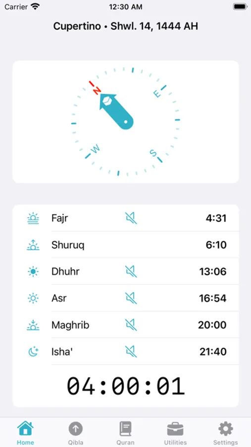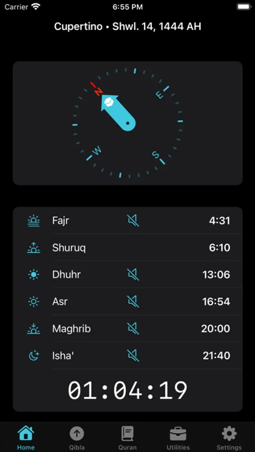 Muezzin lets you find the prayer time and qibla direction for your location by utilizing the build-in GPS functionality in your phone.