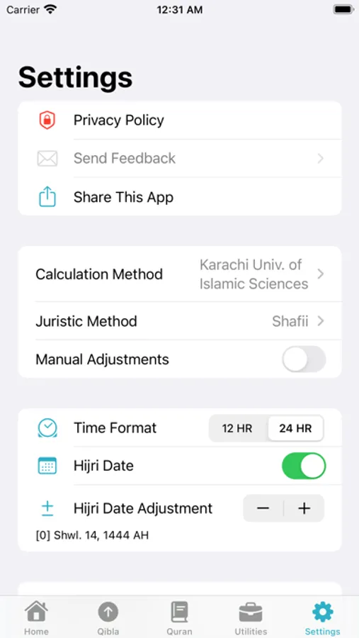 ◆ Auto-update location to re-calculate the prayer times for your current location