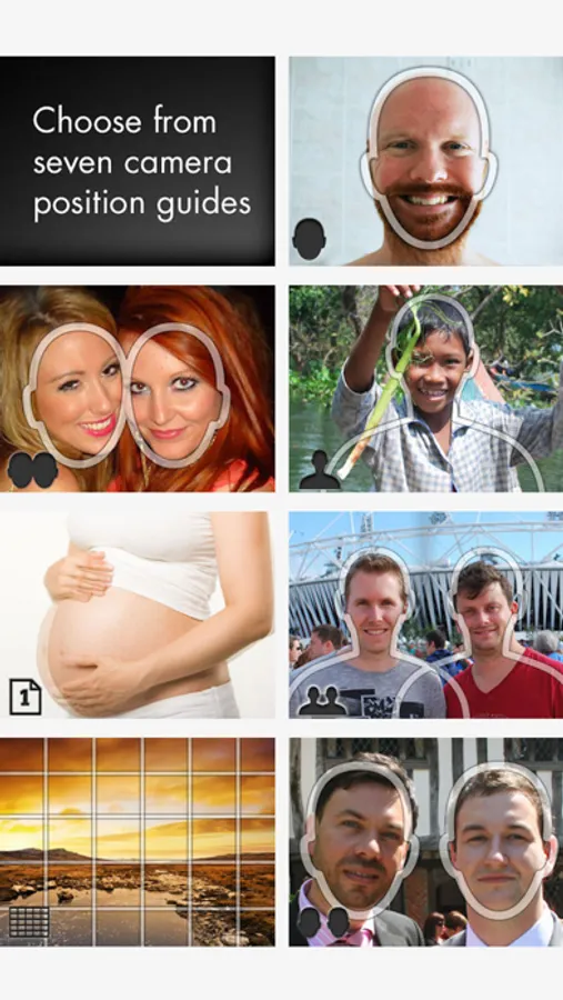 • Add photos using the camera, with the help of seven different overlays