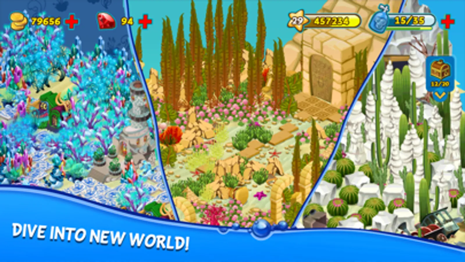 Discover a colorful world of adventure in Treasure Diving. The oceans hold many stories, mysteries and secrets: ancient cities that are under water, sunken ships, treasures and mythical artifacts. They have been waiting for their heroes for many years, and maybe you will make outstanding discoveries!
