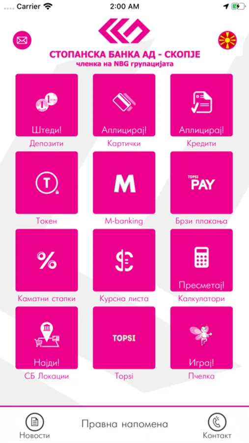 • Директен повик до 24/7 Контакт Центарот на Банката или поврзување со СБ преку FB, TW и другите социјални медиуми, како и следење на веб новостите на Стопанска банка.