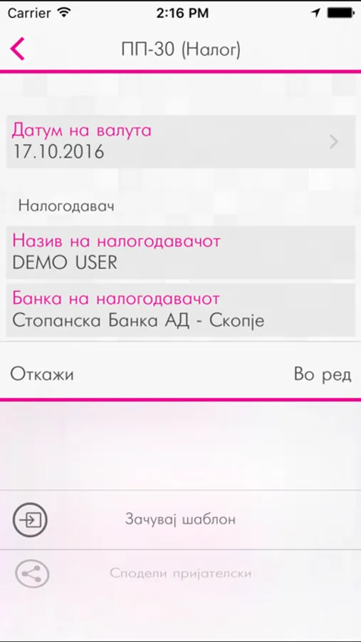 • Користење на готови шаблони за брзи уплати на сопствени сметки, уплати за кредити и кредитни картички и други плаќања