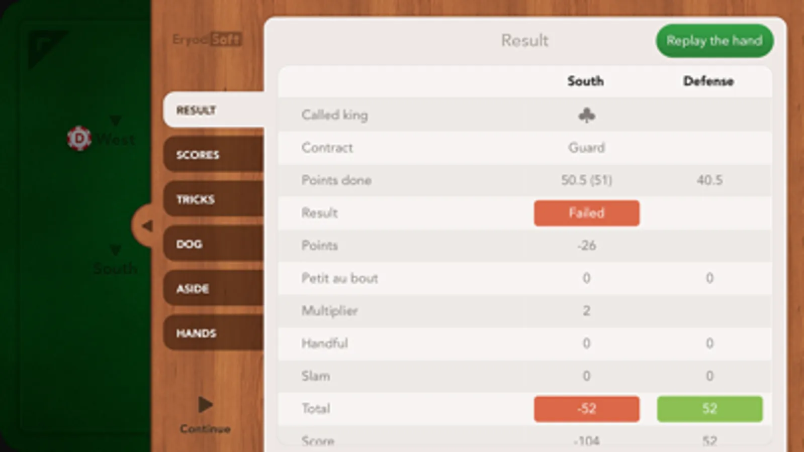Finally, you can at the end of the round see all the tricks, and replay the round if we want, to train and try new strategies.