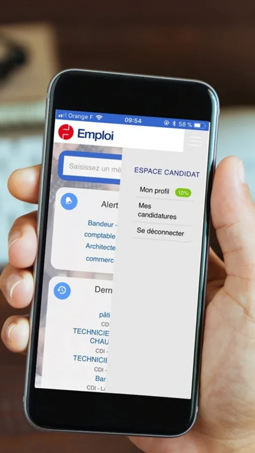 - Connecté : retrouvez toutes vos actions de recherches, de candidatures, ainsi que votre profil dans votre espace candidat
