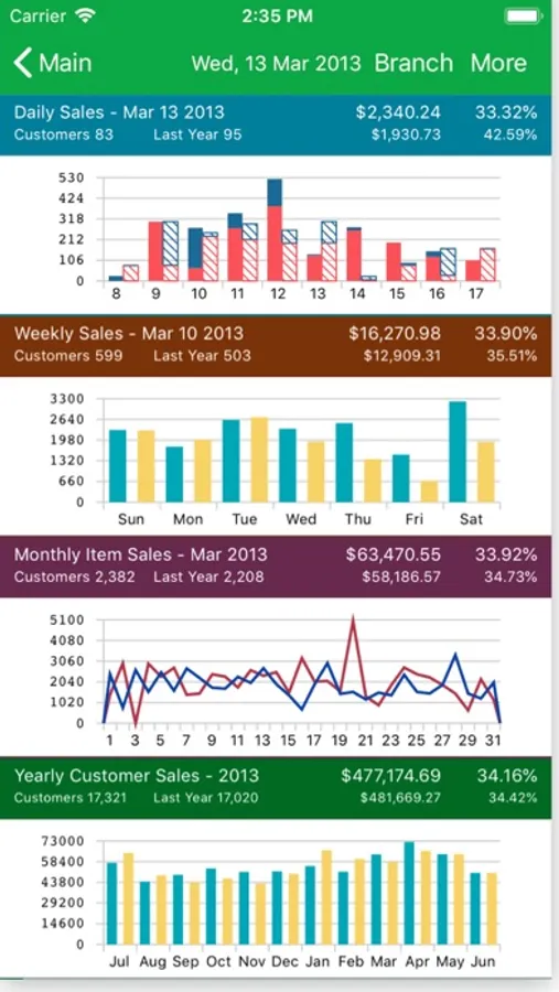 • View Sales by Department by Day, Month to Date and Year to Date figures.