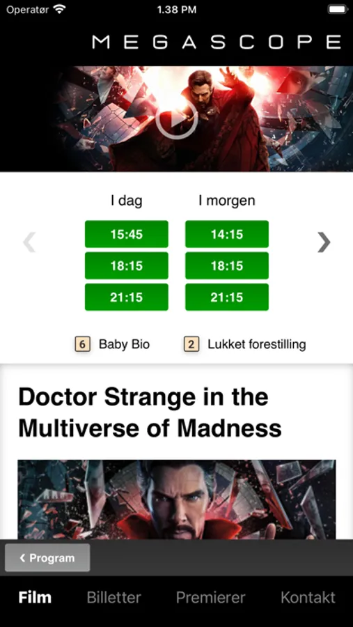 Med denne app har du mulighed for at gennemse programmet for Megascope samt se yderligere filminformationer som trailer, censur, medvirkende skuespillere, varighed m.m.