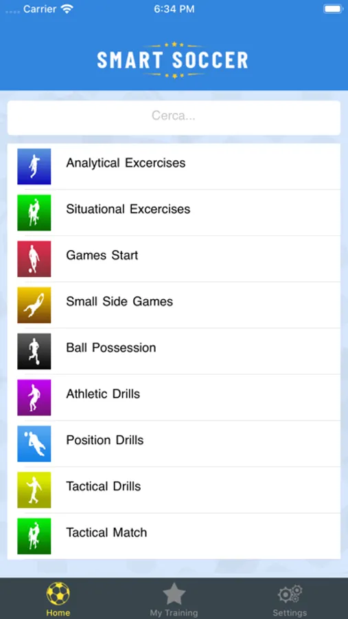 The Smart Soccer exercises are divided in 8 categories: Analytical Exercises, Situational Exercises, Games Start, Themed Games, Ball Possession, Athletic, Position & Tactical Drills.
