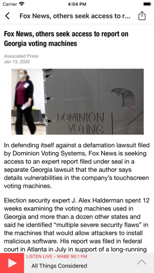 • Listen to live streams from WABE even while traveling! Open the app and your favorite station starts playing – no matter where you are.