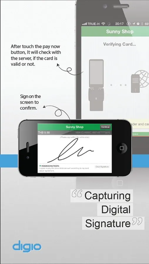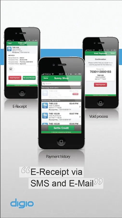 K-PowerPay (mPOS) is a revolutionary service from kasikornbank that enhances your business and improve customer experiences. With K-PowerPay (mPOS) application and your mPOS (Mobile Point-of-Sale) device, you can change your smart phone and tablet into a secured credit card terminal accepting any VISA and MasterCard cards. You can simply insert a credit card into the mPOS reader, sign on the device screen, enter email or phone number so we can send the e-Receipt.